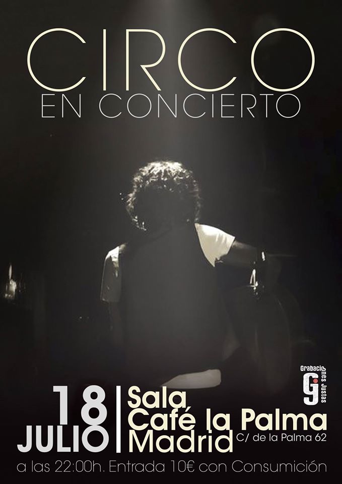 Concierto Madrid – Café La Palma 18 julio, 2015 Madrid Compartir Details Time : 22:00 &output=embed"> A todos aquellos que estéis este verano en Madrid, ya podéis marcar esta fecha en vuestro calendario. CIRCO vuelve a Madrid! Esta vez en el emblemático Café La Palma! Precio: 10 € consumición incluida